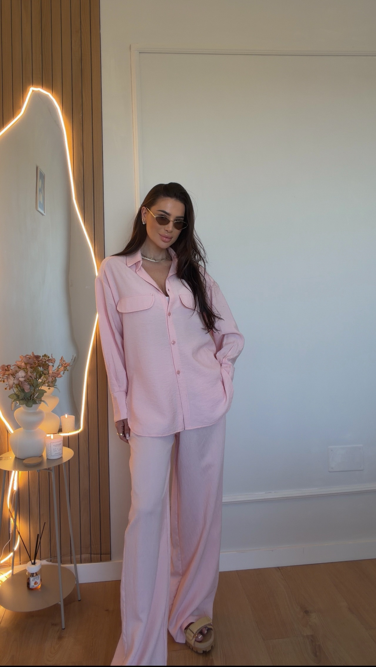 Costumul Linen PinkeyDay redefinește eleganța casual cu nuanța sa delicată de roz. Designul său modern, cu un croi lejer, oferă confort și stil, fiind perfect pentru zilele însorite. Asortează-l cu accesorii aurii și o geantă albă pentru un look sofisticat și fresh.Realizat din vascoza( inn in compozitie) tesatura naturala.